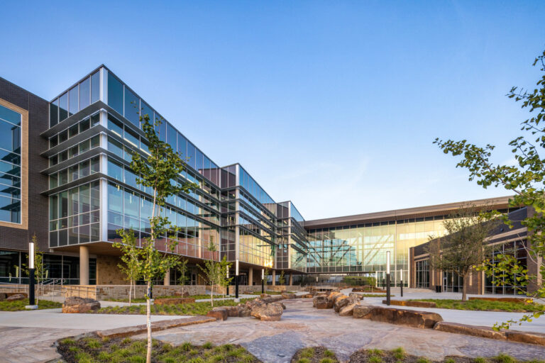 The Gila River Police Department Facility, located within the Gila River Indian Reservation in Sacaton, AZ, included the new construction of a 54,592-square-foot campus featuring a main building housing dispatch, evidence storage, a fitness area, locker rooms, and a community room, along with a support building that includes a vehicle bay, inspection area, and K-9 kennels.