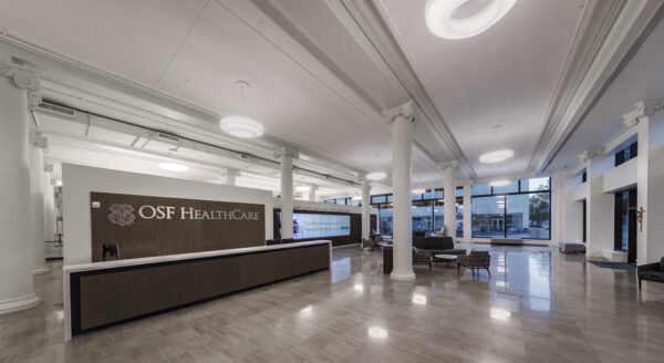 Renovations to a 61,750-square-foot building in Peoria, IL to a medical outpatient facility featuring a pharmacy, medical group, pediatrics, and more.