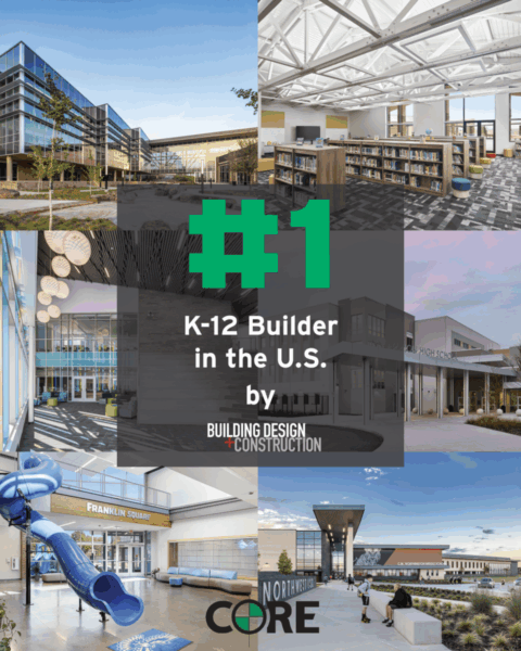 We’re proud to share that CORE Construction has been recognized as the #1 K-12 Builder in the United States by BD+C. This achievement reflects our long-standing commitment to building exceptional learning environments that empower students, educators, and communities across the nation.