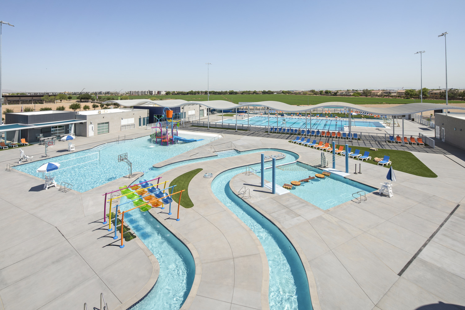 The Avondale Aquatic Center is a state-of-the-art recreational haven spanning nine acres, designed to captivate and inspire the community of Avondale, AZ. Featuring a competition pool, a thrilling recreation pool with towering water slides, and a serene lazy river, the facility offers something for everyone. Behind the scenes, advanced systems ensure seamless operations, while the 9,102-square-foot administrative building provides modern locker rooms, versatile conference rooms, and spacious meeting areas. More than just an aquatic facility, it serves as a hub for joy and connection, hosting competitive swim meets, family-friendly movie nights, and countless other events. Recognized for its excellence, the Avondale Aquatic Center proudly received the Arizona Parks and Recreation Association (APRA) Outstanding Facility Award, solidifying its status as a cherished destination that enriches the lives of residents and visitors alike.