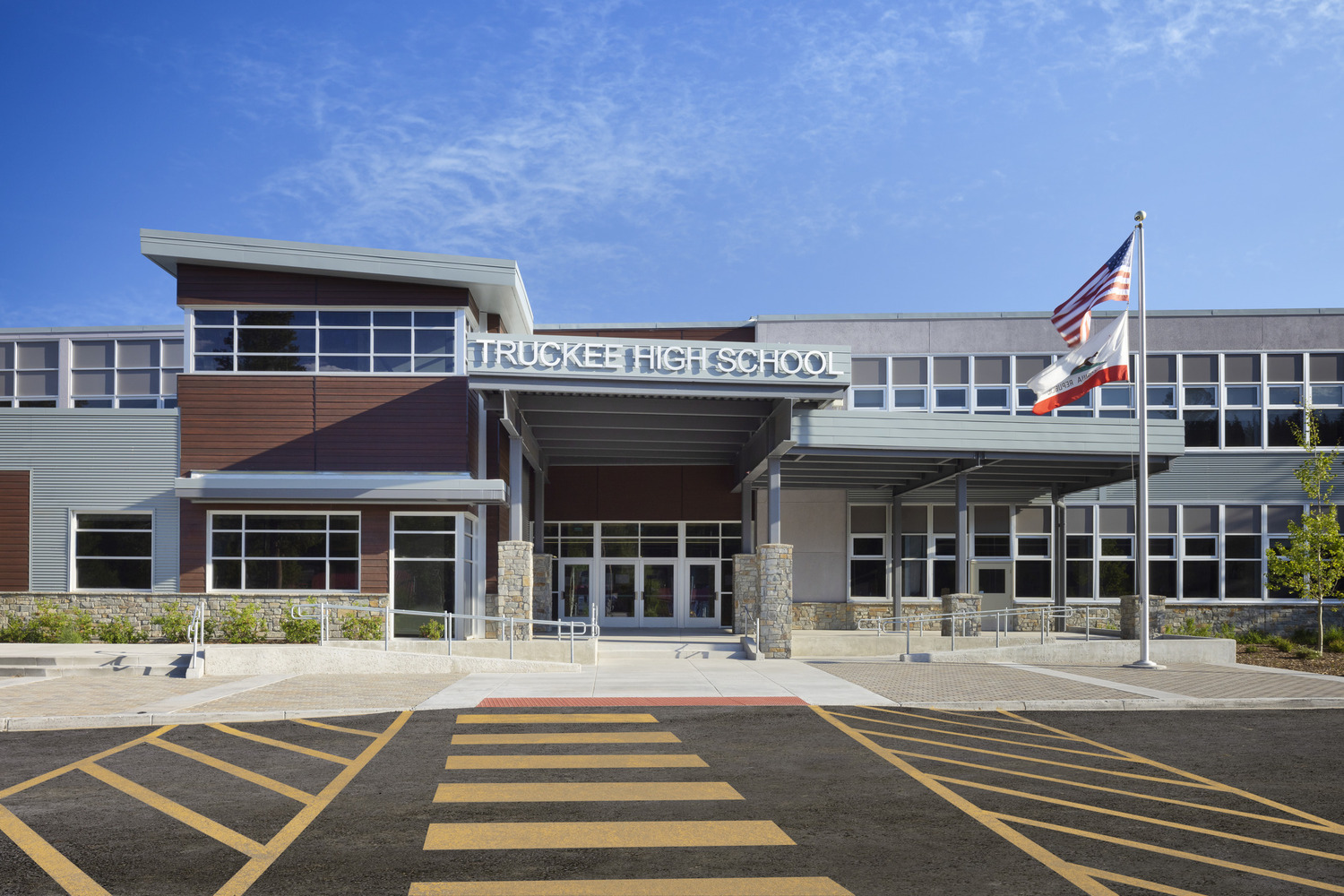 The Truckee High School Modernization and Addition project included significant renovations to the 136,495-square-foot building located in Truckee, CA. The project also included the new construction of a 6,800-square-foot library and administration building. Modernizations consisted of new finishes, upgraded mechanical and electrical systems, upgraded technology, roof repairs and structural upgrades. Other improvements included front façade enhancements, reconfiguration of the band area and gathering areas, and various upgrades to the bus drop area. An important aspect of this project was the removal of hazardous waste, and Truckee High School generated approximately 40 cubic yards of hazardous materials which CORE safely and successfully abated. The Truckee High School project was completed ahead of schedule without sacrificing quality or the safety of students and staff.