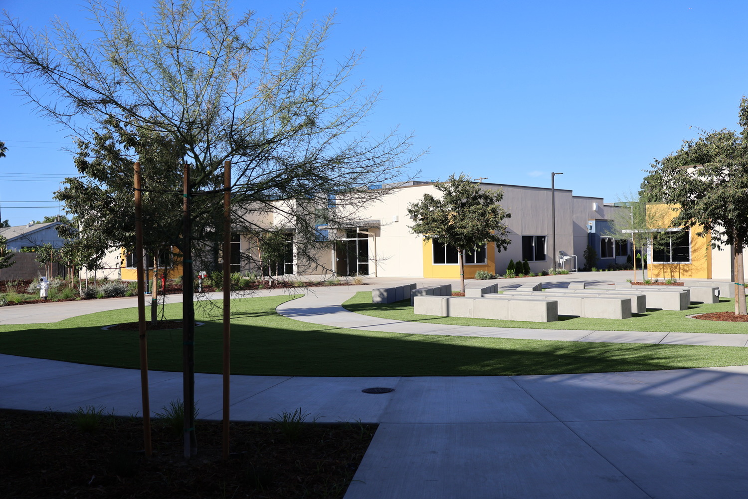 The Nicholas Elementary School Replacement project, completed for Sacramento City Unified School District in Sacramento, CA, involved the full replacement of the existing elementary school campus. The work began with the demolition of 18 portable classrooms and a 20-room, 42,000-square-foot building to make way for the new 57,719-square-foot facility designed to accommodate up to 650 students. The new campus features a multipurpose room, STEAM lab, community room, multiple shade canopies, and a U14 soccer field, all designed with a focus on energy efficiency and environmental stewardship. As one of the first new schools constructed in Sacramento City Unified School District in nearly two decades, Nicholas Elementary School now stands as a modern, inspiring, and sustainable learning environment that enhances both educational experiences and community pride.