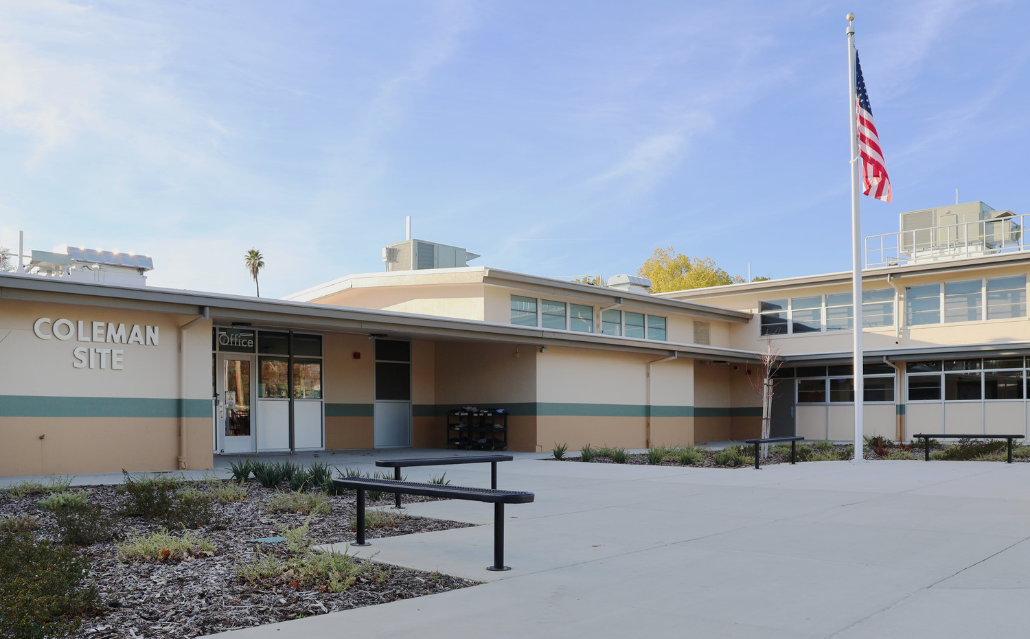 The Coleman Charter Modernization project, constructed for San Juan Unified School District, included a modernization to an existing charter school in Orangevale, CA. This comprehensive modernization effort, covering 27,153 square feet, included a range of enhancements such as accessible parking, ADA-compliant site concrete replacement, new landscaping, ornamental iron fencing, upgraded administration spaces, classroom beautification, roofing removal and replacement, exterior repainting, new HVAC systems for all classroom and administration areas, and fire alarm upgrades. Now complete, this project has transformed the campus, providing a safe, modern, and welcoming environment for students and staff.