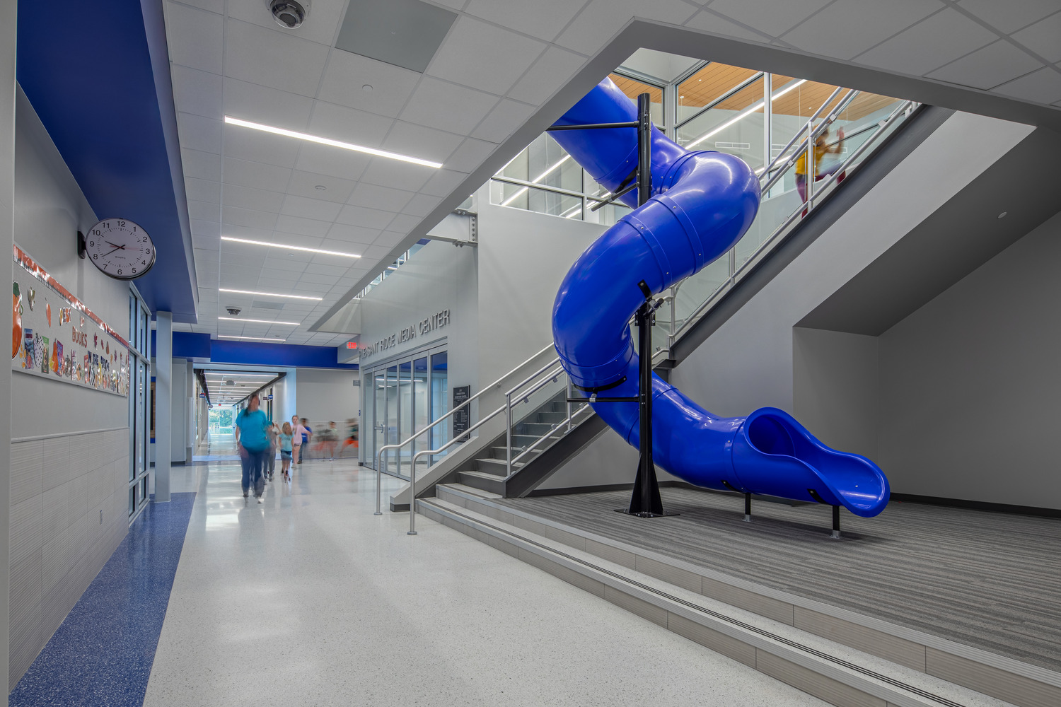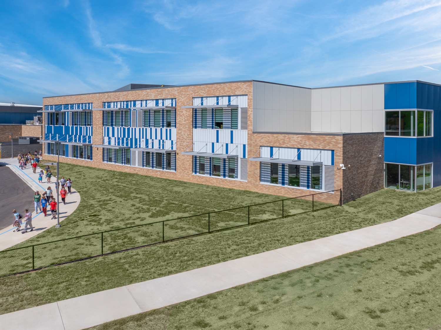 The Charlestown Elementary School project, located in Charlestown, IN, is an exciting new campus constructed for Greater Clark County Schools. The two-story elementary school spans 125,000 square feet and accommodates 1,400 pre-kindergarten through fifth-grade students. The campus features ample instructional space and common areas, a state-of-the-art kitchen and gymnasium, and outdoor amenities. Charleston Elementary School was constructed upon a concrete footings foundation with a cold formed metal, load-bearing masonry, and structural steel frame. An exterior of curtain wall, masonry, and metal paneling with a single-ply roof completes the elementary school.