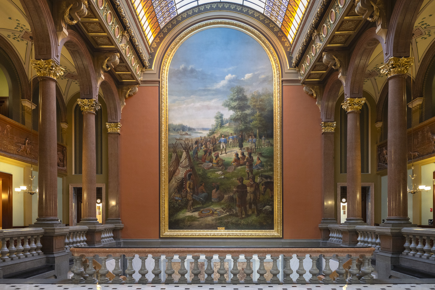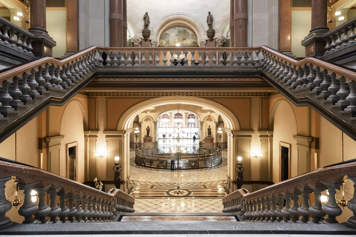 The Illinois Capitol North Wing Renovation project, completed for the State of Illinois Office of the Architect of the Capitol in Springfield, IL, encompassed the addition, demolition, renovation, and restoration of 110,380 square feet within the historic Capitol building. The work included a complete gut of existing finishes and mechanical systems, followed by the meticulous restoration and replacement of historic plaster, decorative painting, and original stone and wood finishes. The project also introduced a new conference center and a north entryway, seamlessly integrating modern functionality with the building’s historic character. Constructed on a concrete foundation supported by footings, drilled concrete piers, and stone columns, the renovation features a masonry exterior with metal panels and a single-ply roof system. The completed project revitalized a treasured state landmark, preserving its architectural heritage while enhancing its functionality for future generations.
