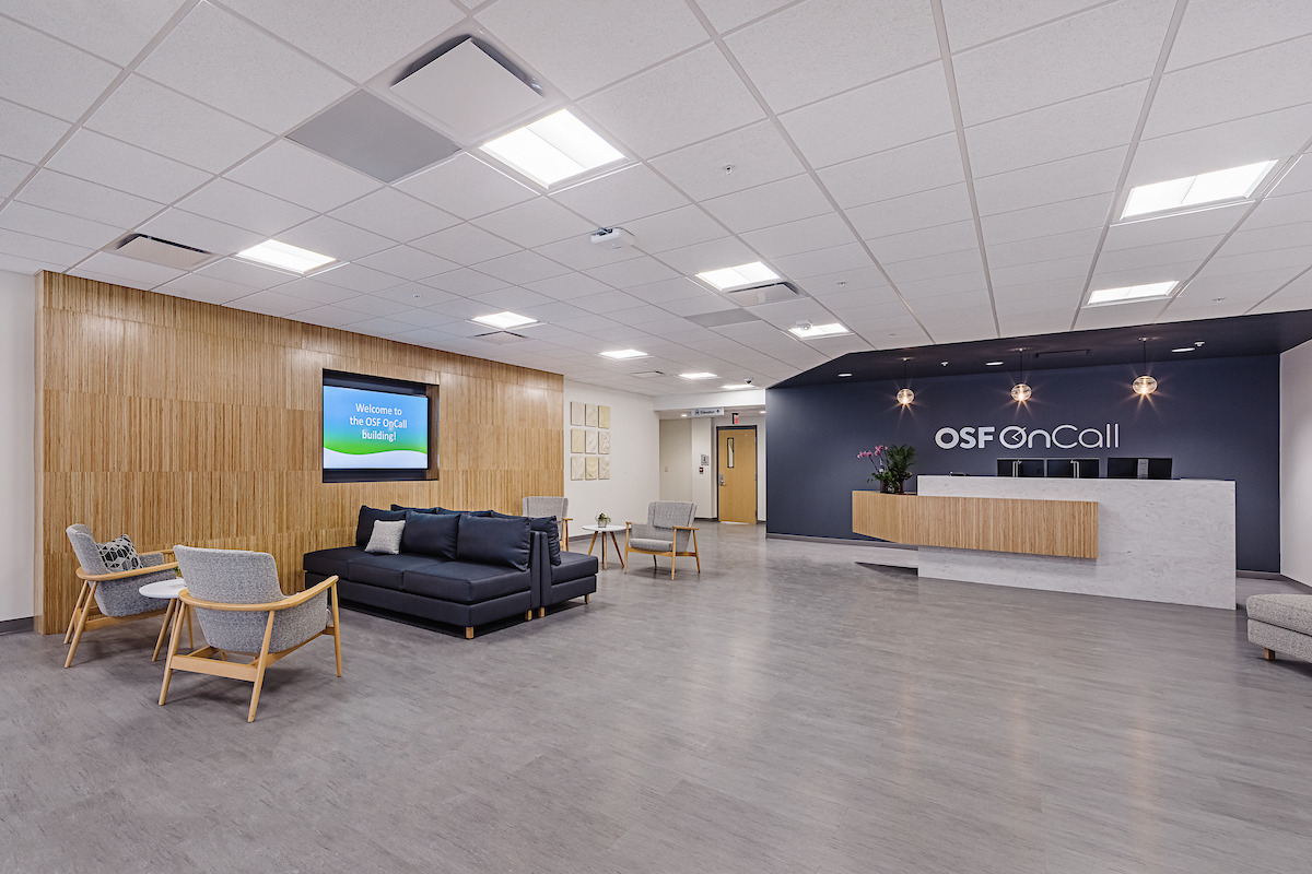 The Saint Gabriel Digital Health Center Renovations project, completed for the OSF HealthCare System, included the renovation of 78,000 square feet in Peoria, IL. The project featured a portion of an existing five-story office building to create a new office space for the OSF HealthCare System.